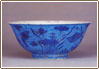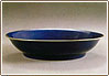 霁蓝又叫积蓝、祭蓝,属高温石灰碱釉。生坯施釉,在1280—1300°C的高温下一次烧成。其特点是色泽深沉,釉面不流不裂,色调浓淡均匀,呈色亦比较稳定。霁蓝釉盛于明代宣德朝。霁蓝器物除了单色釉外,往往用金彩来装饰,还有刻、印暗花的。