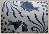 “苏麻离青”又叫“苏泥勃青”,是一种进口的青花彩料。元代与明初的青花,大多是使用这种青料。其特点是发色凝重幽艳,光彩焕发,色性安定。由于料中含有铁质和其它杂质,所以常出现深浅不同的色泽:浓处色如靛,并有似铁锈的瘢点;浅处为天蓝色。有靛色和铁锈瘢的地方都微凹不平,锈瘢浓处深入胎骨并有浅淡的锡光色。用它来绘制线条或人物的眉目脸形是不适宜的,但用来绘大小花朵,梗叶之类,则具特色,烧成后深浅相映,枝叶纷披,给人以清新明快之感。但由于是舶来品,价格昂贵,供应亦不稳定,所以从明成化开始,就逐渐被回青和国产青料所代替。 |